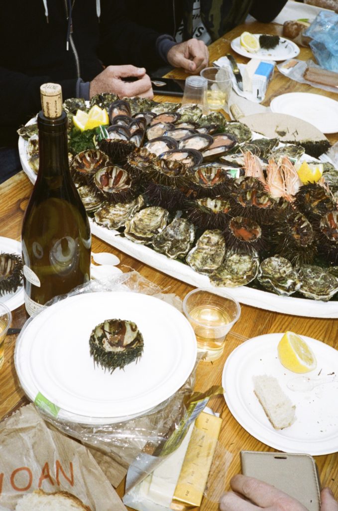 Départ de Marseille où, une fois n’est pas coutume, le ciel est lourd et gris. De la cité phocéenne, on rejoint directement Carry-le-Rouet en empruntant un train qui longe la Côte Bleue, un tronçon de ligne à flanc de falaise qui relie Marseille à Martigues. Arrivés au port, on se faufile entre les stands de cannelés bordelais et de macarons ardéchois, pas tout à fait en phase avec le motif de notre visite : les Oursinades.